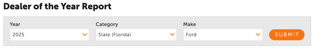 The Dealer of the Year report in the Dealer Panel provides information on your Dealer of the Year rank for the 2026 awards. Scroll down for more info on how to access and use this report.