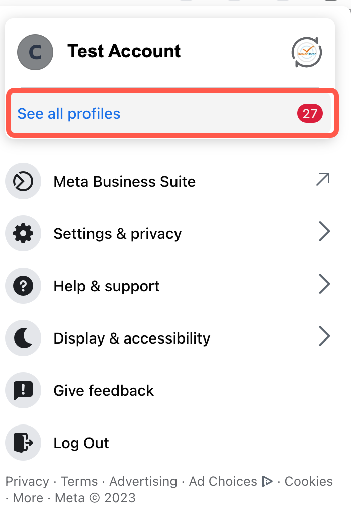 Click See all Profiles, then select the Page you want to switch into.