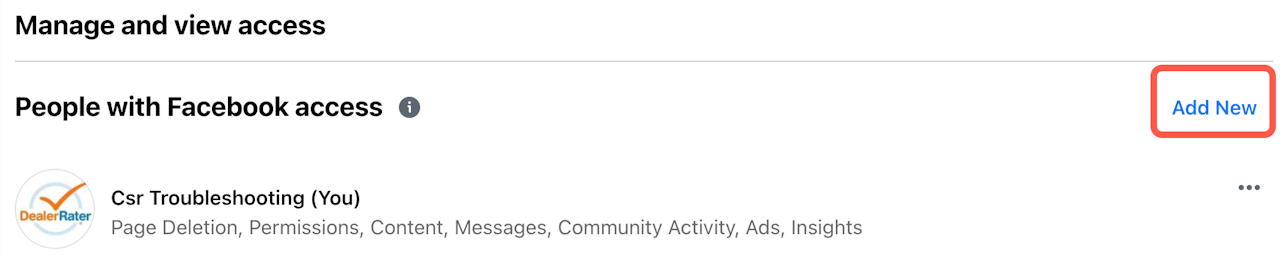 Next, click the "Add New" button adjacent to the People with Facebook Access header.