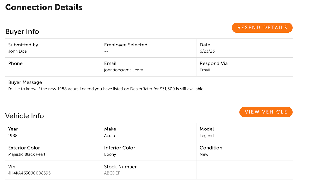To access more details about the prospective buyer and the car, click the lead, and the lead details will display.