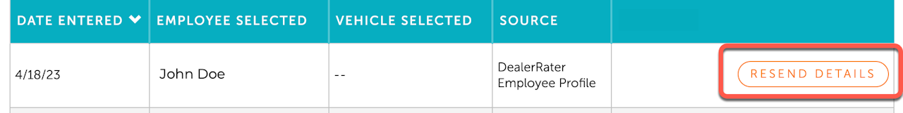 To resend a lead to anyone at your dealership set up to receive lead alerts, including your CRM leads address, click the “Resend Details” button - you can then enter the recipient email address, and choose whether or not to send it to your CRM address.