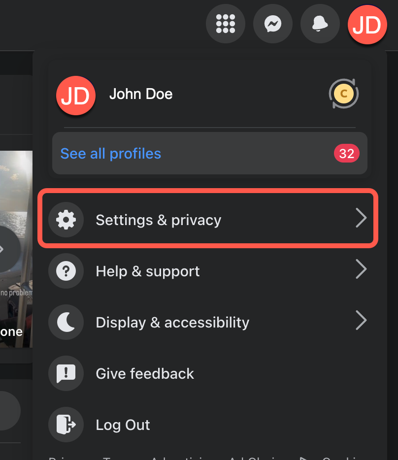 4. From the menu, select "Settings & Privacy," then choose "Settings."
