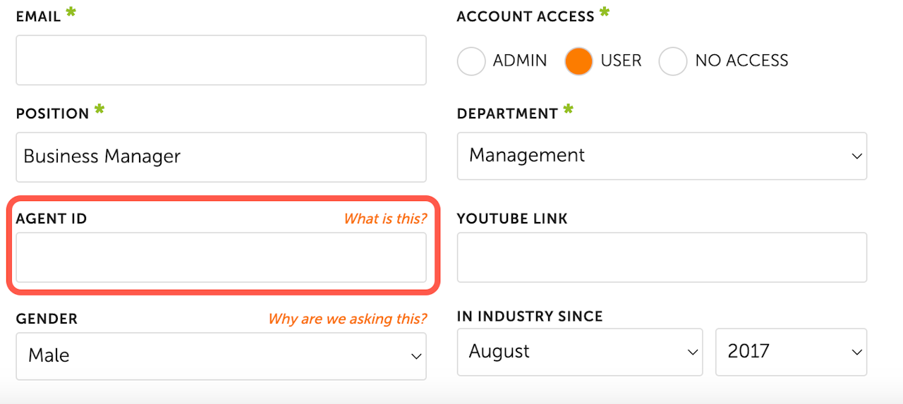 Open each employee profile and add their respective CRM ID provided by your eLead representative into the Agent ID field shown in the screenshot.