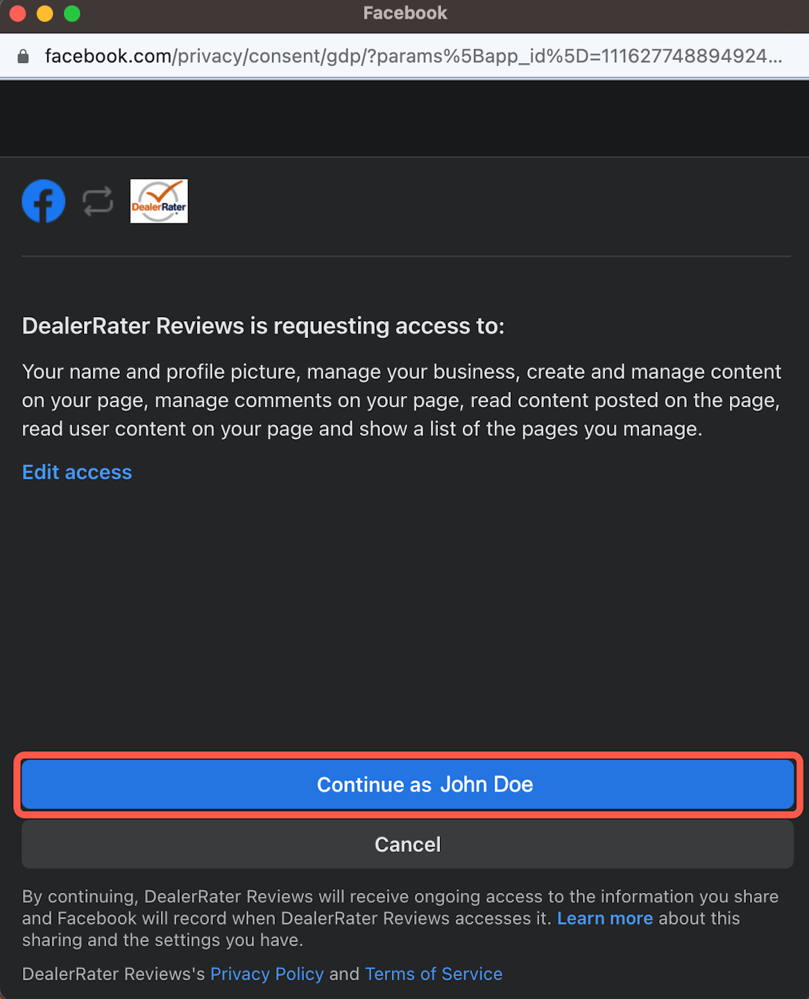Log into the Facebook account, www.facebook.com, which has Full Control of the Dealership Facebook page you want to connect to the Wall Tool.