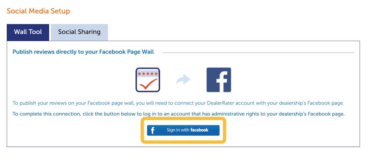 Connecting the Wall Tool will automatically push one review a day to your Facebook page. Below are step-by-step instructions on how to setup the Wall Tool.