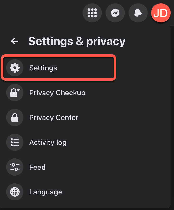 4. From the menu, select "Settings & Privacy," then choose "Settings."