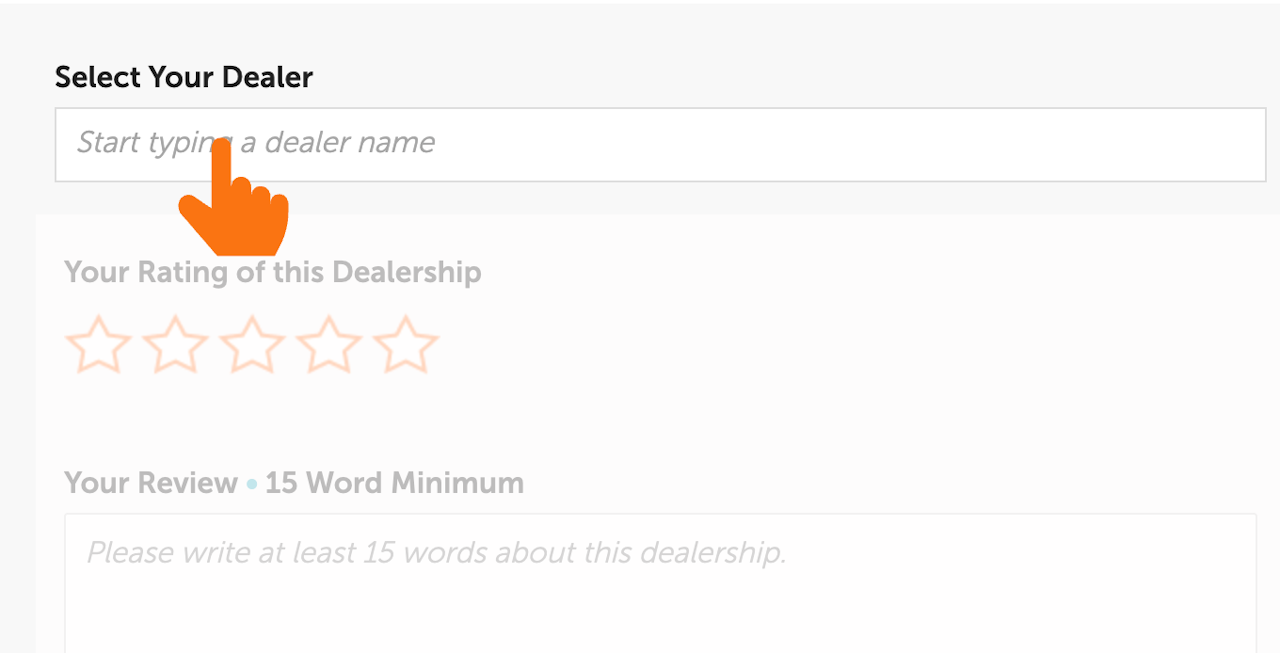 Start reviewing your most recent dealership experience by using the search bar at the top of the form.