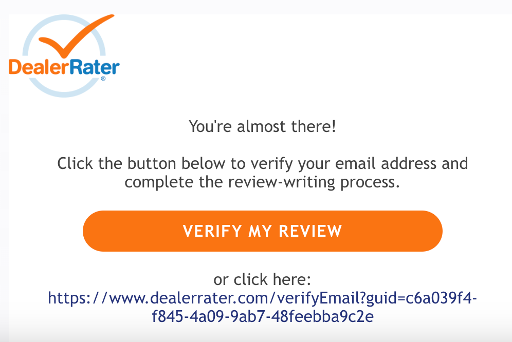 Open your email that you used to submit your review and activate the review by accepting the invite. Once accepting the invite, you will be prompted to create an account so you can communicate with the dealership if you choose.