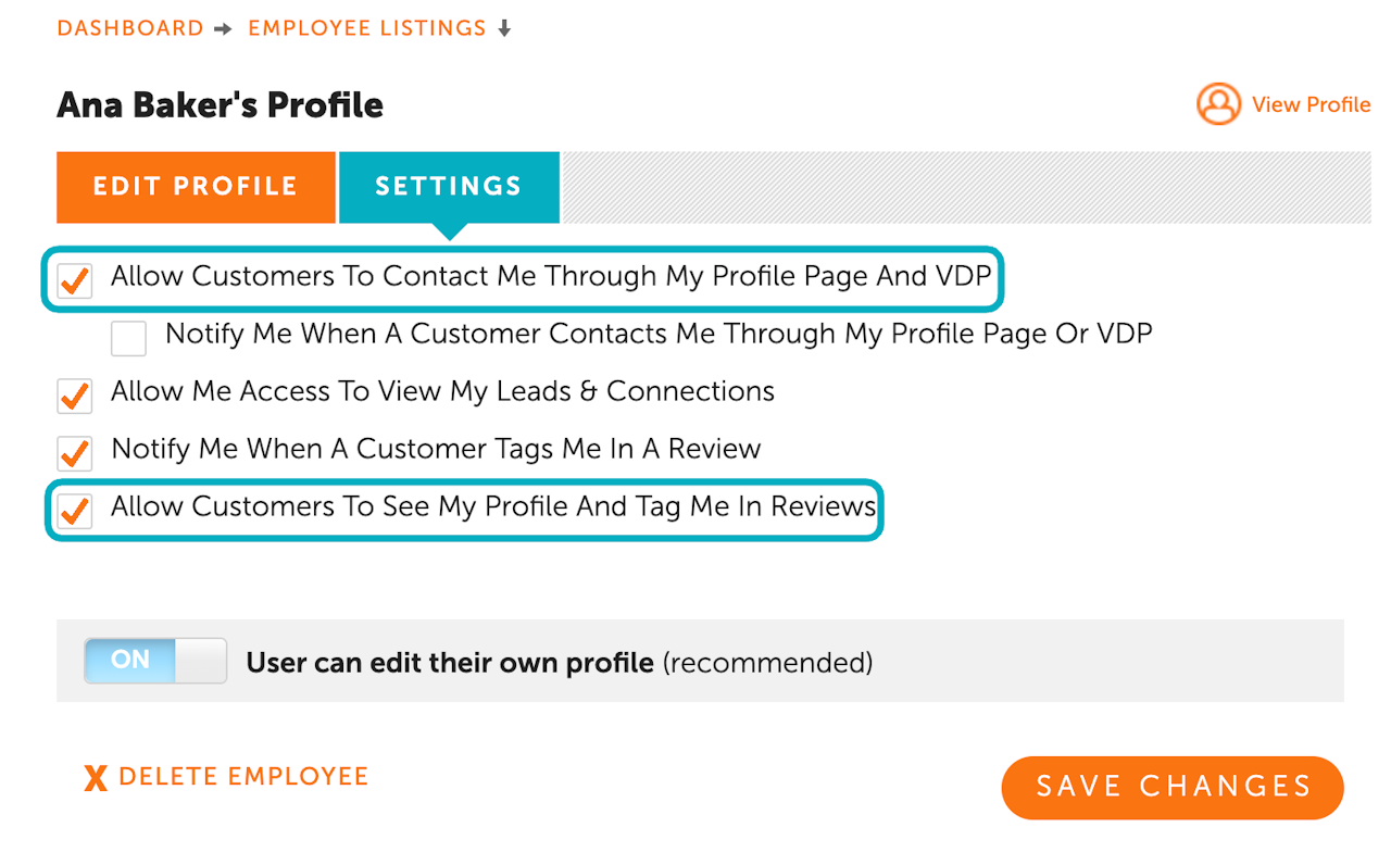 Allow customers to contact me through profile/VDP.